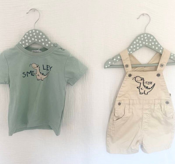 Craquez pour cet adorable ensemble bébé salopette dinosaure, parfait pour un look à la fois mignon, confortable et tendance. Composé d’un t-shirt manches courtes et d’une salopette courte, cet ensemble est idéal pour les journées chaudes.