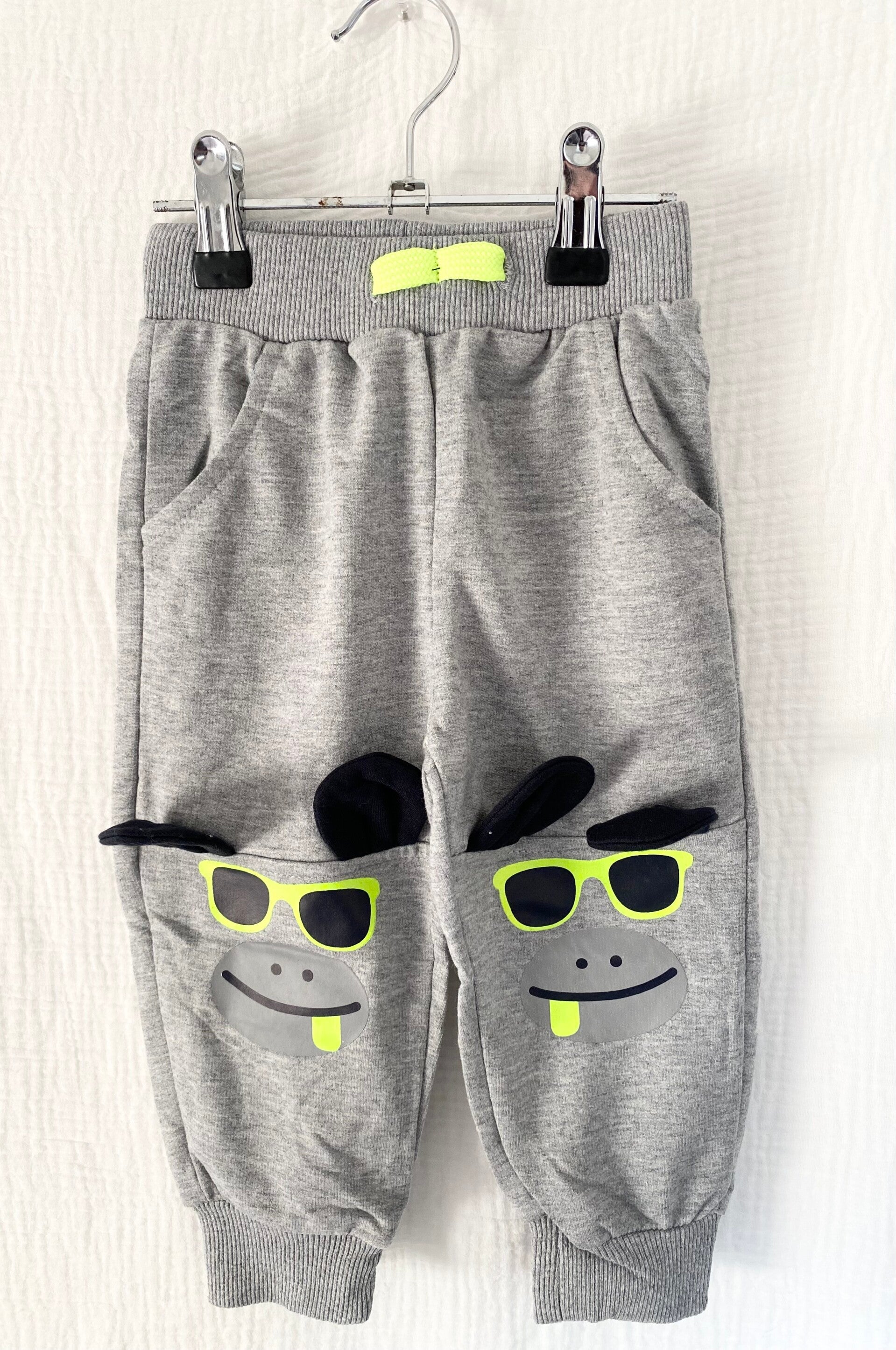 Apportez une touche fun et originale à la tenue de votre enfant avec ce pantalon bébé garçon jogging au design ludique. Disponible en gris et bleu marine, ce pantalon se distingue par son motif animal avec lunettes colorées, parfait pour un look moderne et amusant.